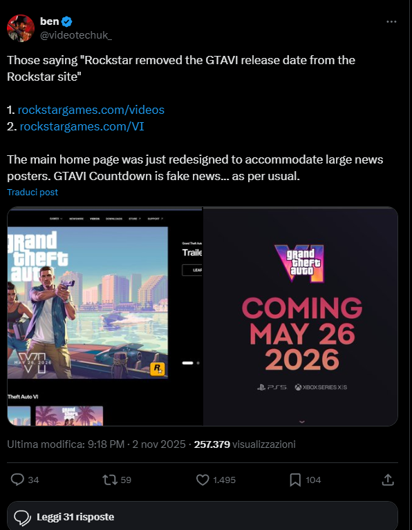 Al momento Rockstar Games mantiene pubblicamente la data indicata nei canali ufficiali e non ha emesso comunicati che confermino ulteriori slittamenti. Questo significa che, fino a una dichiarazione ufficiale, le notizie in circolazione vanno trattate come rumor non verificati. I giocatori e gli osservatori del settore dovrebbero quindi considerare le informazioni attuali come segnali da monitorare piuttosto che come conferme definitive.